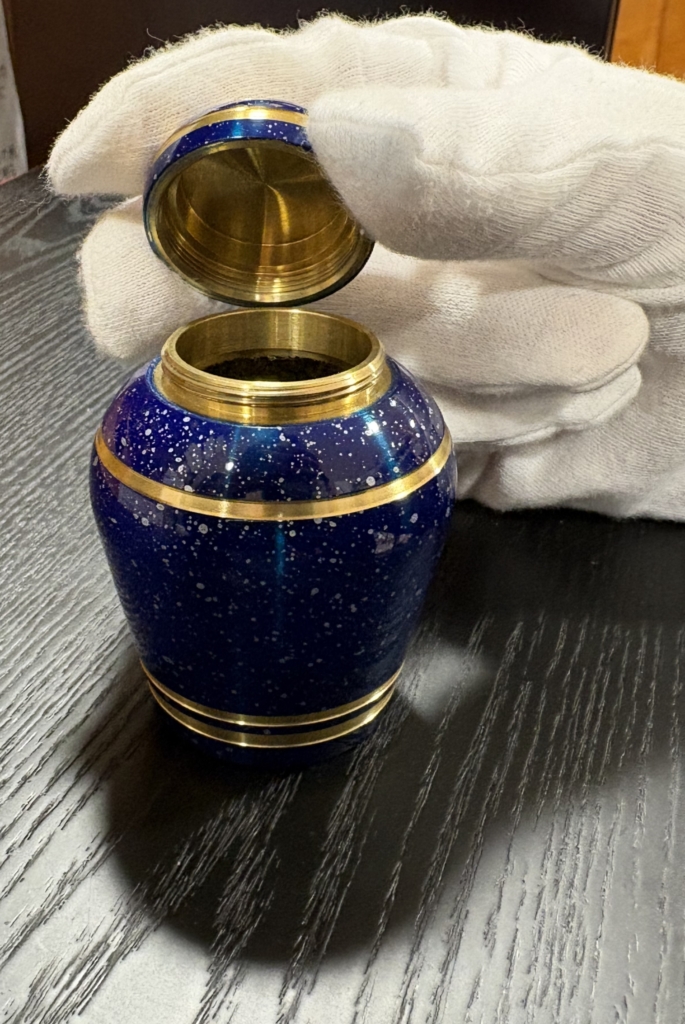 こちらの骨壺は深みがある発色で、まるで星空を思わせるような仕上がりになっております。