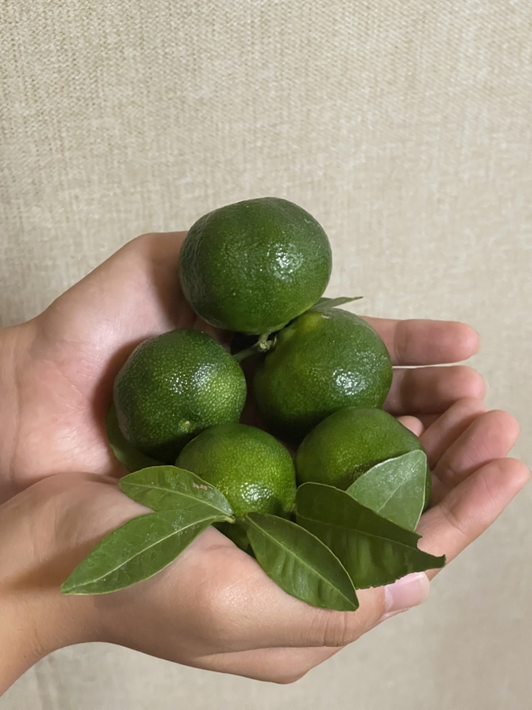大仏堂の店頭ガーデンにてシークワーサーの収穫を5つだけしました✨