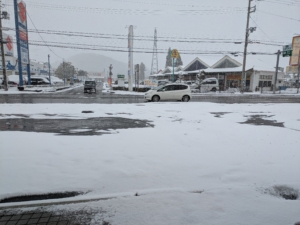 二月八日は朝から雪が降り始め、午後になってもますます降り、積もっています。