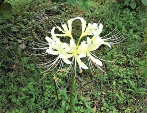 秋といえば彼岸花。一般的に赤をイメージしますが、先日は白い彼岸花を見かけました。