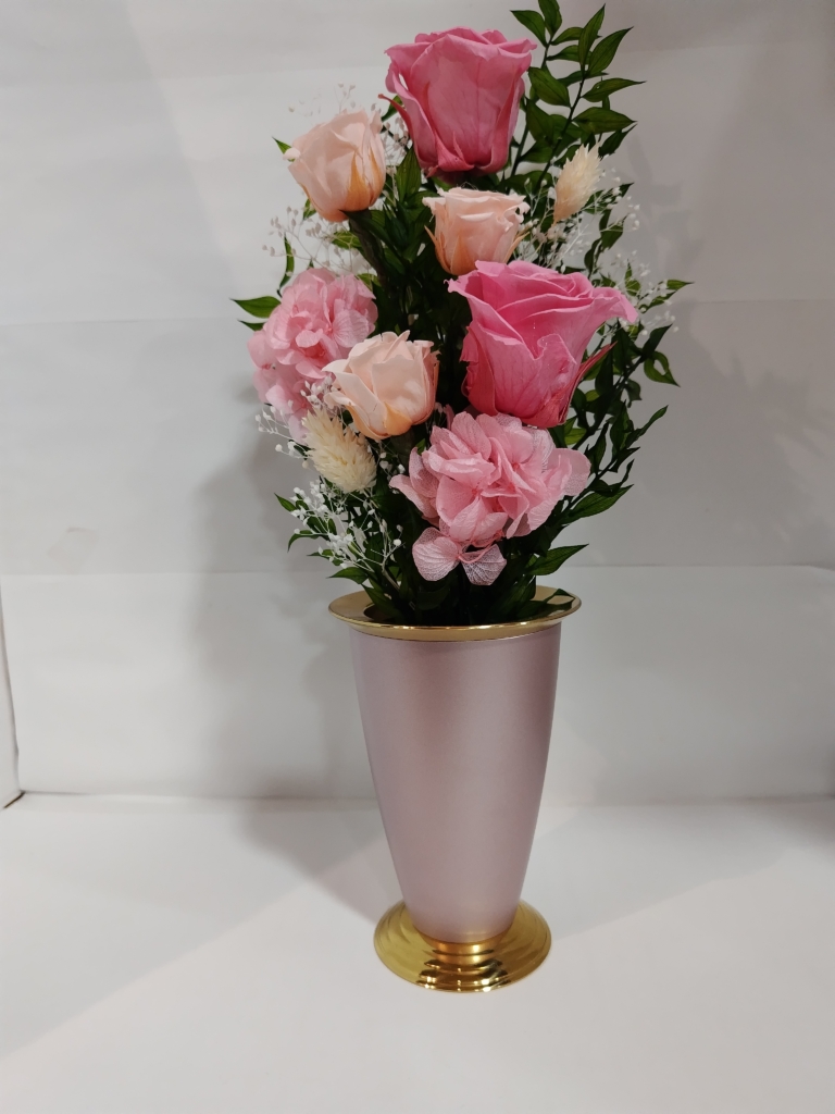 お父様がバラが好きだったと言われましたので、このようなバラを中心にしたプリザーブド仏花を作らせていただきました。