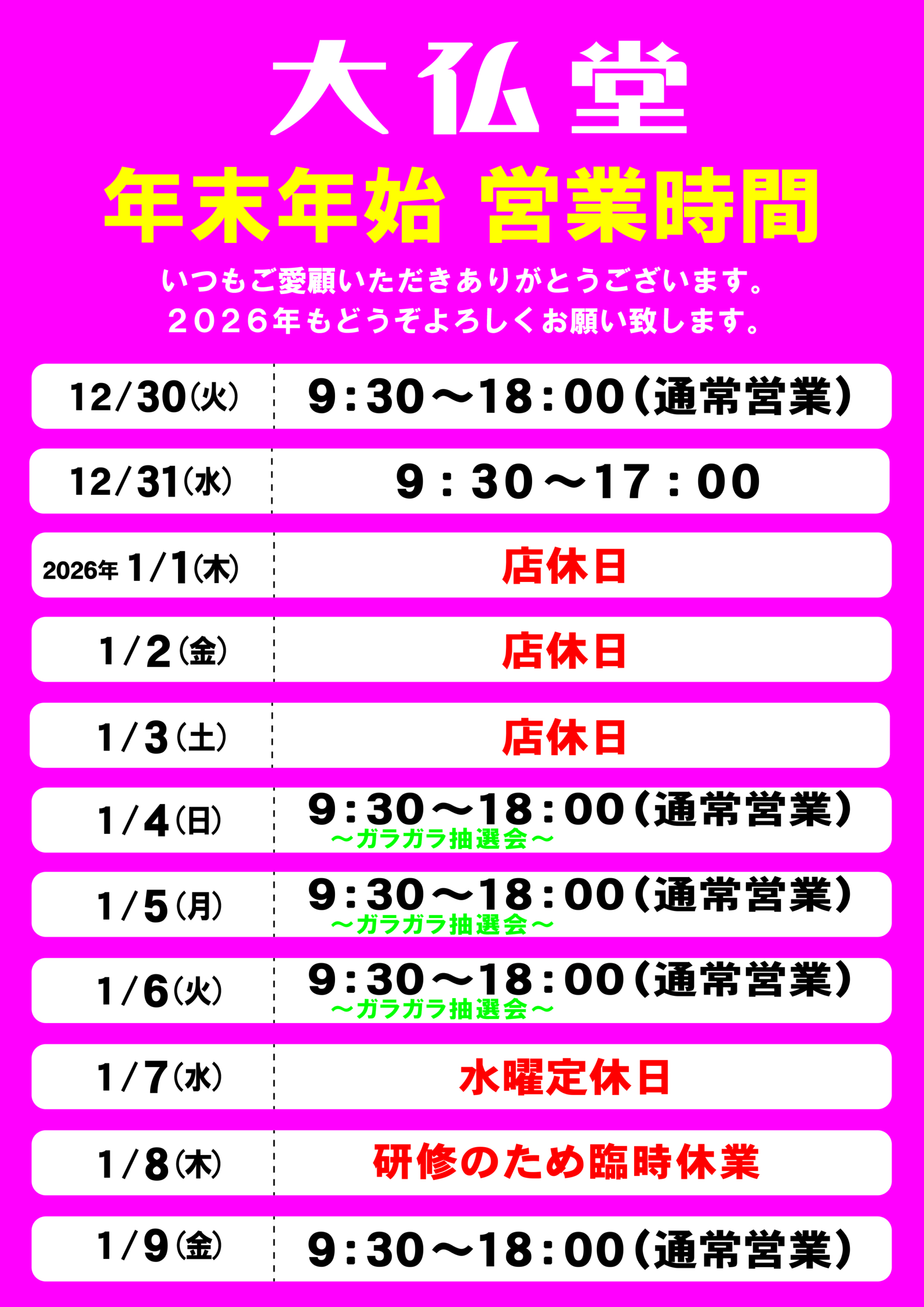 年末年始営業時間POP