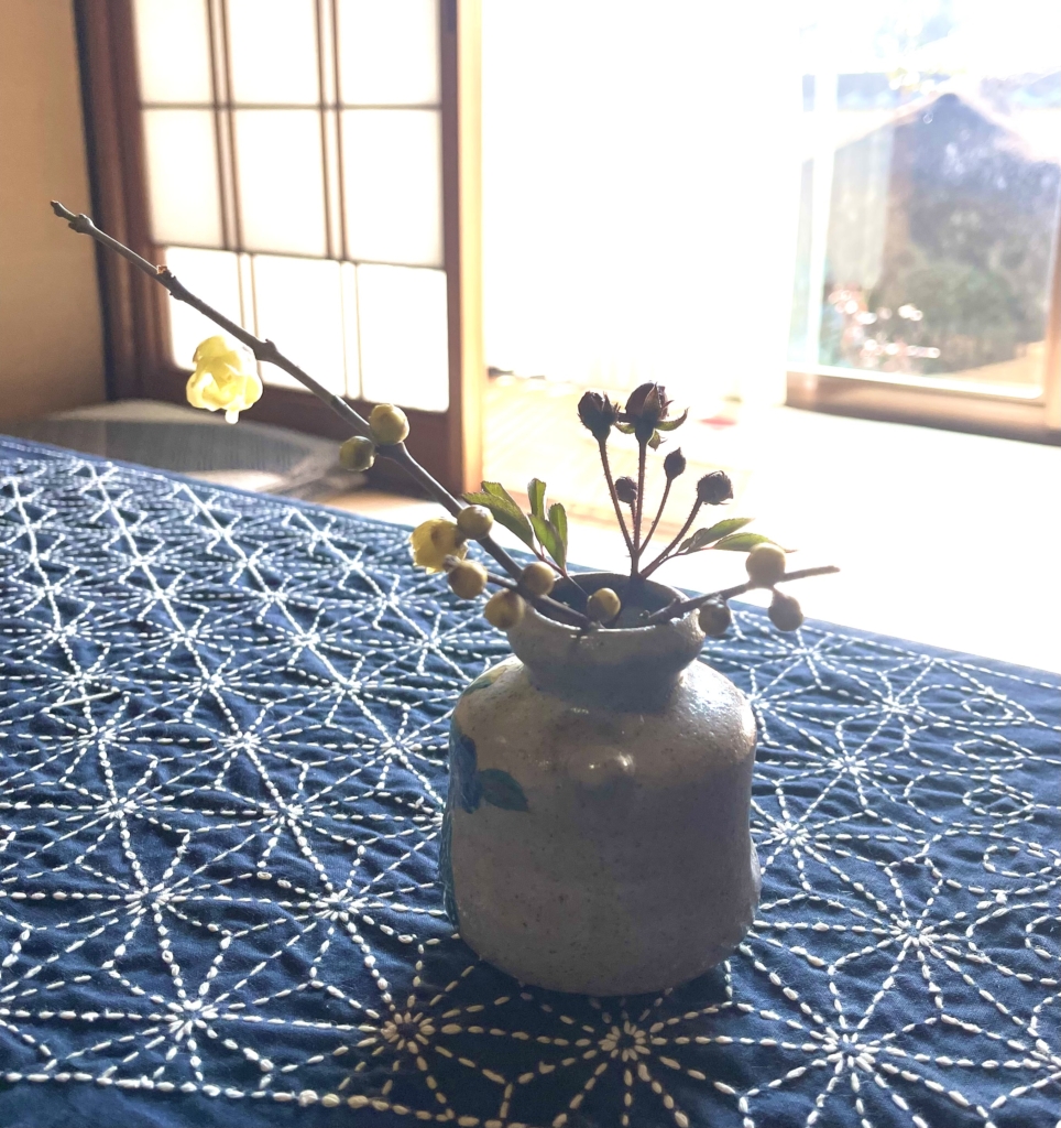 今日は納品があるということで机には「蝋梅とバラの花」を飾られており🌸