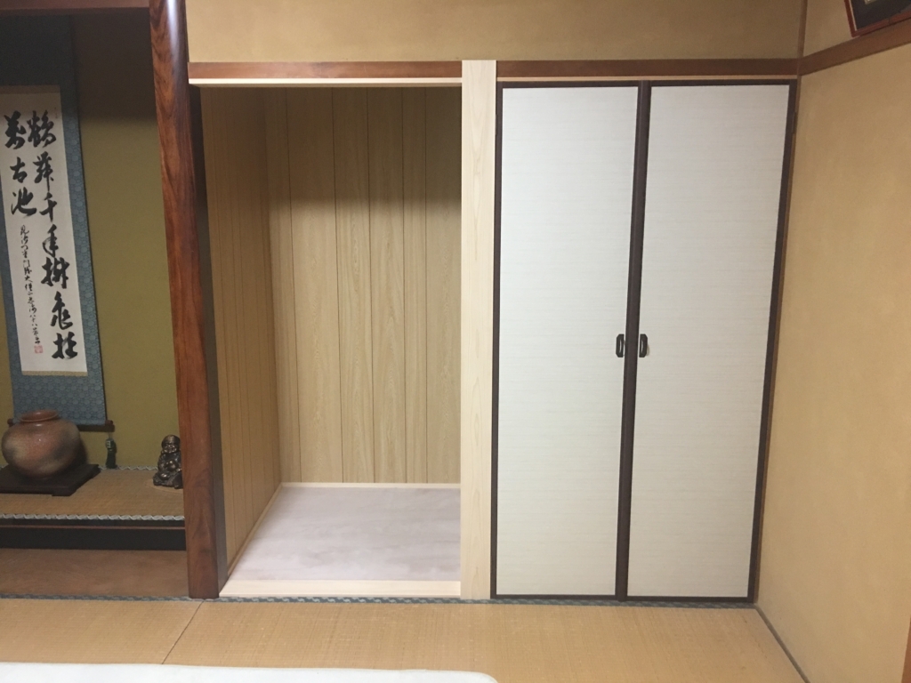 もともとは押し入れで、半分を仏壇にもう半分を観音開きの押し入れにすることにしました。