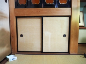 つくりつけ仏壇の地袋戸の張替えをさせていただきました。